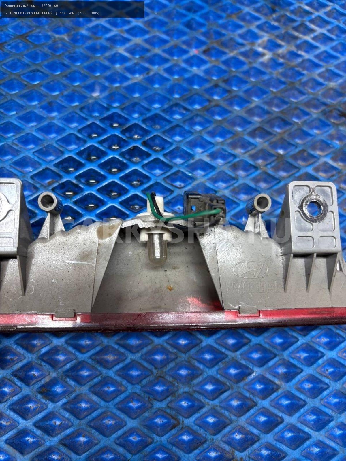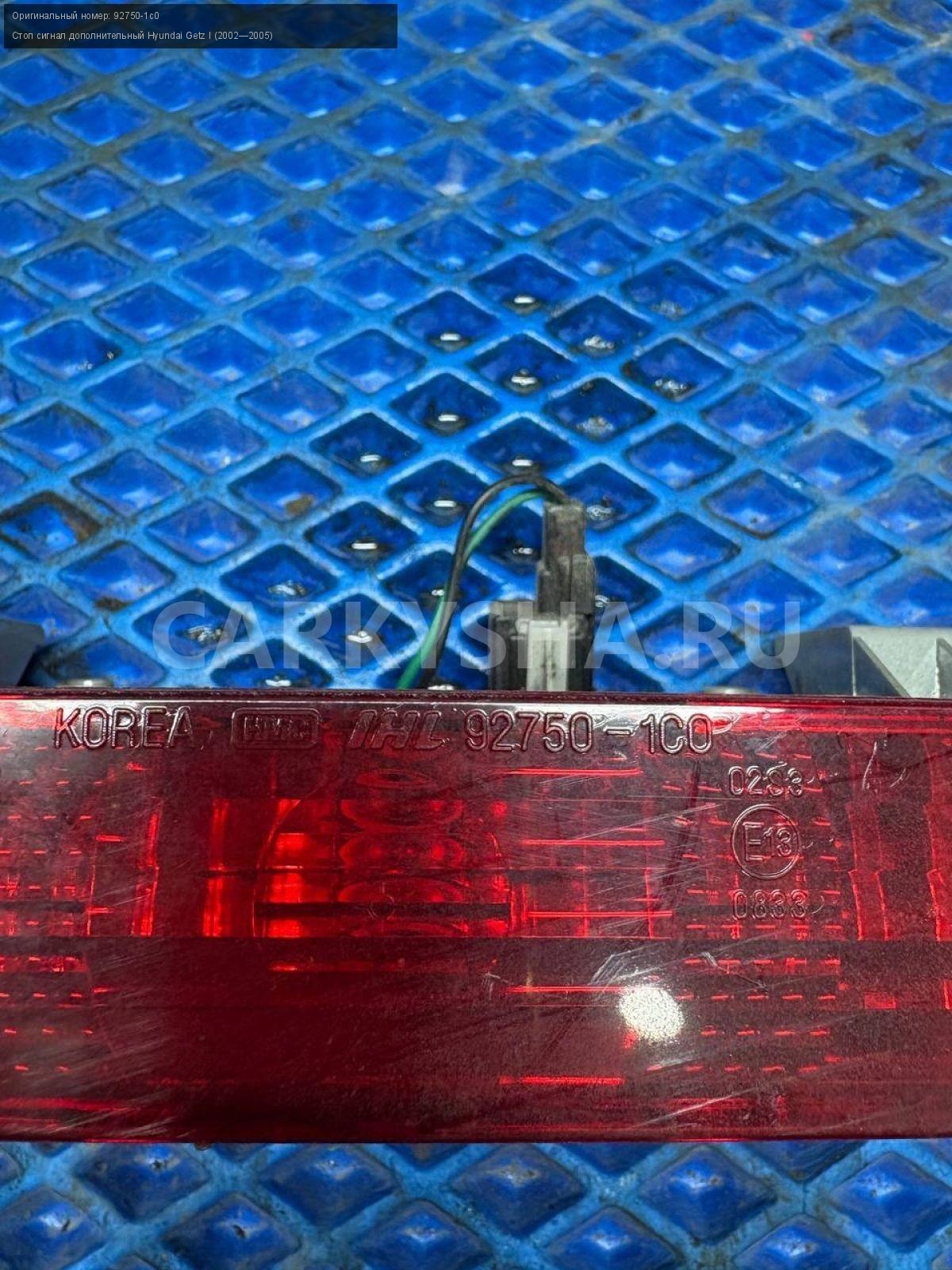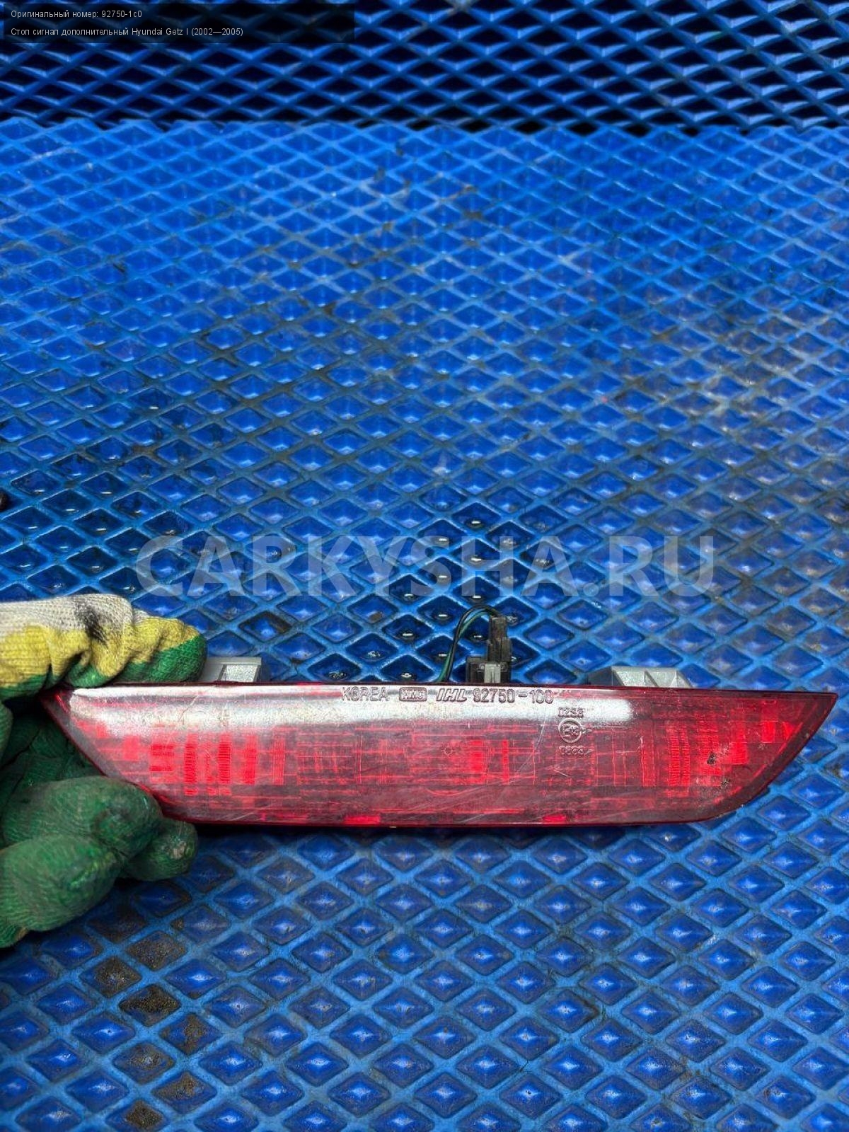 Hyundai Getz, дополнительный стоп-сигнал.\nАртикул: 9212\n\nОриг. номер: 92750-1c0\nПроизводитель: Hyundai-KIA\nПримечание:Хендай Гетц, дополнительный стоп-сигнал, б/у. \n\nМарка: Hyundai\nМодель: Getz I (2002—2005)\nГод выпуска: 2005\nКузов тип: Хетчбэк\nДвигатель номер: G4ED\nМодель двигателя: инжектор\nОбъем: 1.6\nТопливо: Бензин\nКоробка: Механика\nЦвет: Ярко-красный\nСовместимости: Hyundai Getz I (2002—2005) 1.6 MT (105 л.с.)\nСовместимость: