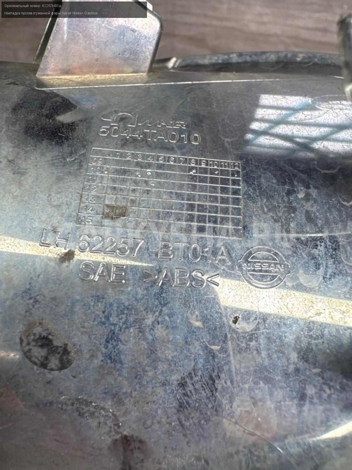 Накладка противотуманной фары левая Nissan Qashqai Nissan Qashqai оригинальный номер 62257bt01a